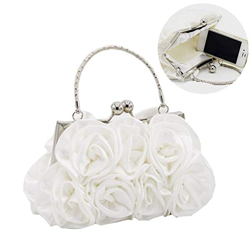 Borsa da sera donna fiore rosa borsa da sposa borsa da sposa pochette da sposa (bianco)