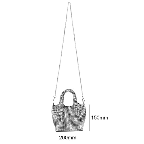 Borsa da sera con strass per le donne, borse con strass per le donne, borsa a secchiello in cristallo da donna con diamante da sera borsa a tracolla con catena staccabile, Argento