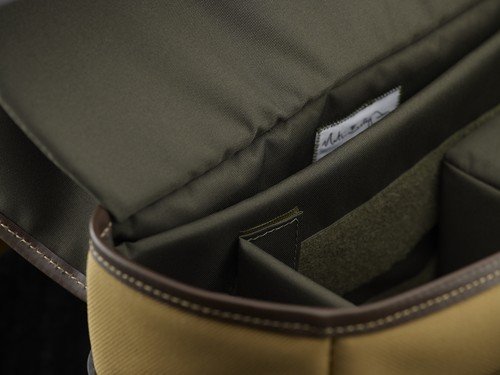 Borsa serie f/Stop 1.4 25x35x17cm FibreNyte Khaki/Bordi Cuoio cioccolato + finiture ottone