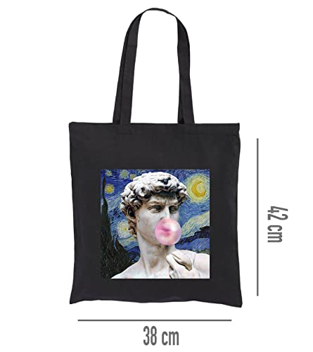 Borsa Shopper Cotone Arte 38x42cm Manici Lunghi 70cm Materiale alta qualità Idea Regalo Colori Nero Beige naturale (Nero)