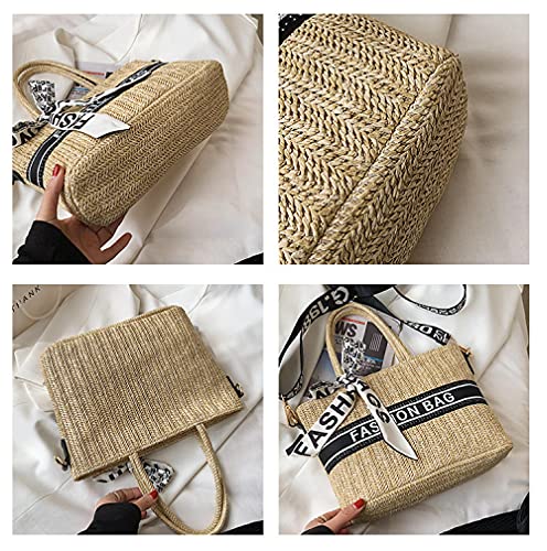 Borsa da spiaggia Borse di paglia Borsa estiva da donna in rafia Borsa da viaggio con cesto di palma Foulard di seta Tote