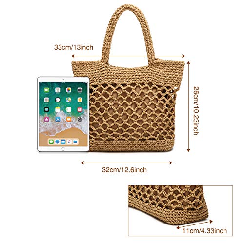 Borsa da Spiaggia di Paglia,JOSEKO Tessitura Delle Donne Borsa Della Benna All'aperto Borsa a Tracolla Casual (Marrone)
