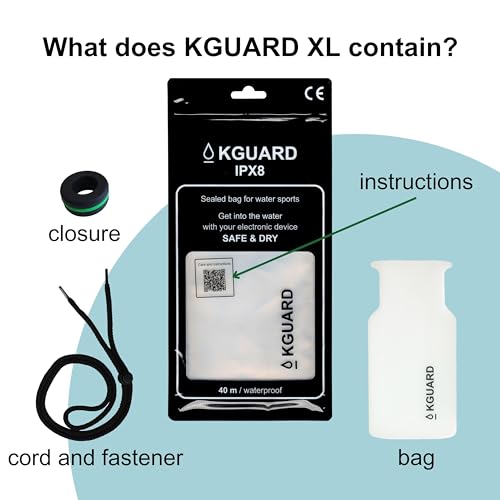 Borsa stagna KGUARD XL per telefono cellulare - Smartphone. Ideato per gli sport acquatici (Surf, Kitesurf, Windsurf, Kayak, Foil...). Certificata impermeabile: IPX8. Compatta e confortevole.