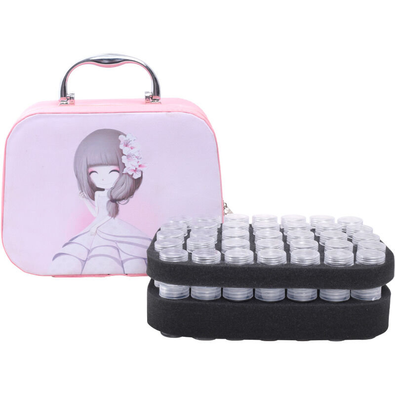 Porta utensili per pittura con diamante perfetto, grande capacita di contenere tutti i tuoi utensili. Design a doppia cerniera, e comodo da trasportare. Questo e un set eccezionale perché ha tutto cio di cui hai bisogno! Caratteristiche: Vasetti di plastica trasparenti da 70 pezzi con una grande custodia e un pezzo di adesivo. Tieni gli oggetti separati e sicuri. Scocca in PU con stampa principessa dei cartoni animati, design raffinato e resistente, a 70 slot, puoi scegliere facilmente il colore dei diamanti che desideri. Doppie cerniere e manico portatile, comodo e facile da trasportare. La fodera antiurto protegge gli oggetti nella scatola da danni durante l'agitazione. Proteggi gli oggetti da polvere o ruggine, mantieni tutti i materiali di lavorazione e perline in un punto ordinato e organizzato. La scatola puo contenere accessori per pittura, strass per nail art, pillole e altre piccole parti, adatti sia per uso domestico che commerciale. Nota: il colore potrebbe essere