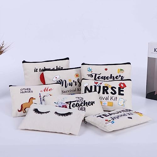 Borsa Stoffa con Cerniera Astuccio Maestra 5 Pezzi Borsa da Trucco Cosmetica Vuotaborse Tela,Astuccio per Matite,Sacchetti con Cerniera per Fai Da Te Pittura,Scuola,Viaggi,Deposito Cancelleria(beige