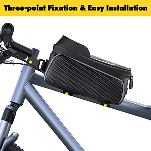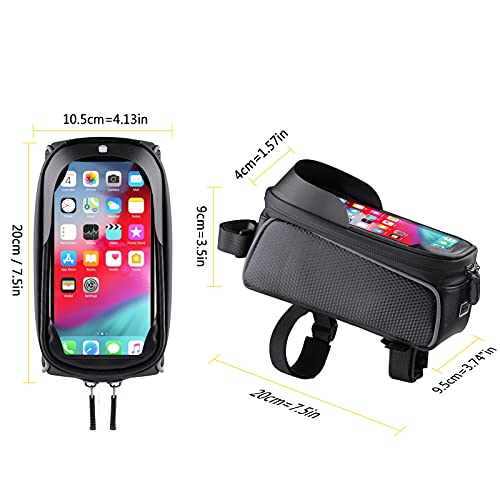 【Grande capacità】: la grande capacità della borsa bici telaio orizzontale è fino a 1,5 litri, che può ospitare smartphone sotto i 6,5 pollici e molti dei tuoi strumenti come guanti, occhiali da sole, portafogli, chiavi, alimentatori mobili e piccoli strumenti di riparazione, eccetera.