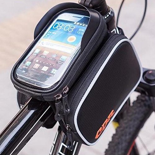 Borsa telaio bicicletta, Wrcibo bicicletta della bici tubo Telaio Top supporto del sacchetto del telefono per iPhone 6S 6Plus Samsung Galaxy S5 S6 etc (dimensioni dello schermo ≤ 6.2 pollici Smartphone) (Nero)