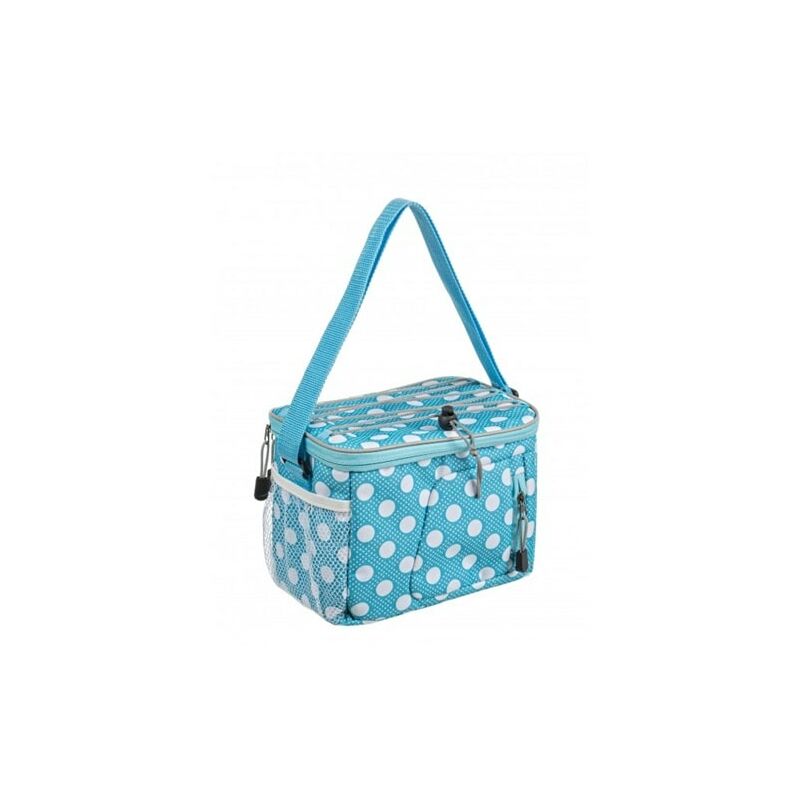 Esclusiva Borsa termica a Pois ideale per le vostre prossime vacanze o per una gita fuoriporta. Dimensioni: 20 x 12,5 x h 16 cm 4 litri Materiale: Nylon 600D rivestimento interno in PEVA I blocchetti refrigeranti NON sono inclusi