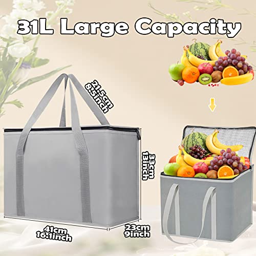 Borsa Termica Grande 31 Litri Borsa Frigo Termica, Riutilizzabile Borsa Cibo Impermeabile, Borse Termiche Pieghevole per Pranzo, Picnic,Consegna di Cibo,Spesa,Ufficio,Viaggi,Campeggio (Grigio)