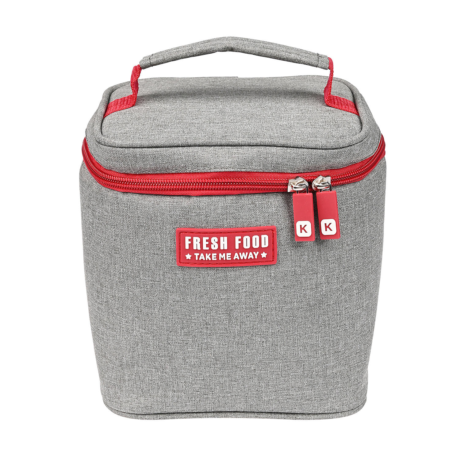 La linea di lunch box di è pensata per vivere le tue pause pranzo in ufficio in modo pratico e organizzato. All'interno della borsa termica potrai inserire comodi contenitori dentro ai quali conservare i tuoi cibi. Grazie alla chiusura con cerniera e alla robusta maniglia, potrai trasportare il tuo pranzo ovunque vai in piena sicurezza e mantenendolo alla giusta temperatura per 4 ore. Il tessuto esterno è caratterizzato da una stampa effetto melange grigia che lo rende un accessorio alla moda, mentre l'interno è impermeabile, a prova di fuoriuscita di liquidi di cibi e bevande. Se desideri che cibi e bevande rimangano fresche più a lungo, soprattutto d'estate, puoi inserire un siberino all'interno della borsa per il pranzo. Capacità interna totale: 3,8 litri.