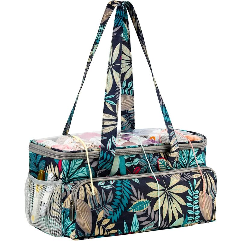 Borsa da viaggio alla moda per maglieria - : Questa custodia in maglia ha un design robusto ed è realizzata con tessuti oxford intrecciati di alta qualità. Questa bellissima borsa per maglieria è perfetta per riporre filati, aghi e altri accessori per maglieria. La pratica tasca frontale viene utilizzata per il metro/segnalatore/gancio/ago intrecciato. La cerniera principale scorre facilmente e si apre, rivelando un centro spazioso che ti permette di riempire i tuoi oggetti essenziali. [Copertura in PVC trasparente con 3 fori in lana lavorata a maglia]: la fodera sulla parte superiore della borsa in maglia è trasparente attraverso, così puoi vedere cosa c'è dentro senza aprirlo. Viene fornito con tre fori in metallo che consentono di tirare il filo utilizzando mantenendo il sacco per maglieria chiuso. Le cerniere proteggono il tuo gomitolo di lana dalla polvere e da tutto ciò che fluttua nell'aria e impediscono anche al tuo gatto o cane di strapparsi. [Il peso estremamente leggero è