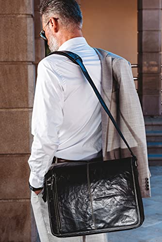 Borsa A Tracolla"ATLANTA" | Pelle Di Bufalo | Unisex Uomo Donna Borse Messenger Nero | By Alpenleder