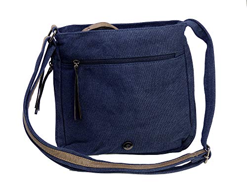 Borsa a tracolla Canvas Style con toppe ricamate, bottoni e motivo floreale - dimensioni 28 x 29 cm - Borsa da donna e ragazza
