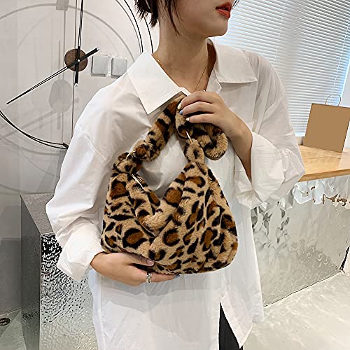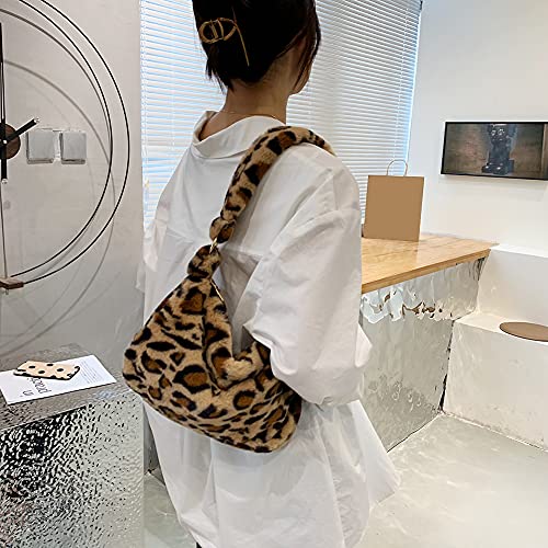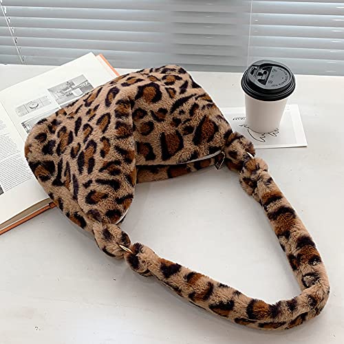 Borsa a tracolla da donna, autunno, inverno, in pelliccia sintetica, a tracolla, in peluche, per la scuola, Leopardo marrone., 300 * 200 * 60mm