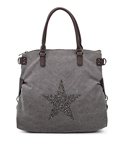 Borsa a tracolla da donna, capiente e grande, con pietre scintillanti a forma di stella, Grigio (Grigio), X-Large