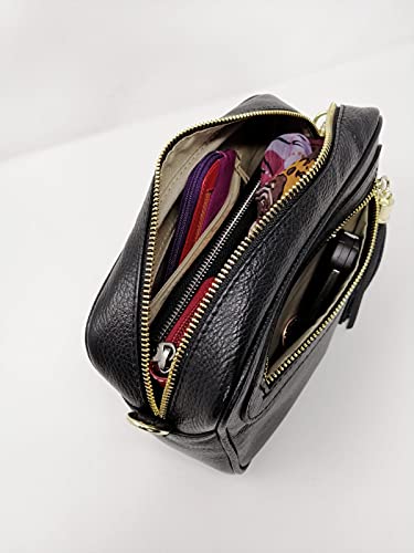 Borsa tracolla donna piccola 100% Vera Pelle Made in Italy con Cerniera e Tracolla Regolabile, colore Cuoio