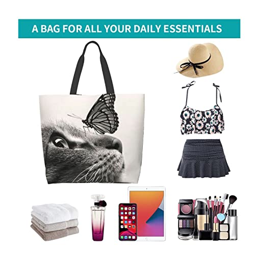 Borsa a tracolla da donna con stampa a farfalla di gatto, elegante borsa a tracolla impermeabile da donna, pieghevole, da viaggio, per lavoro, shopping, grande