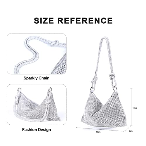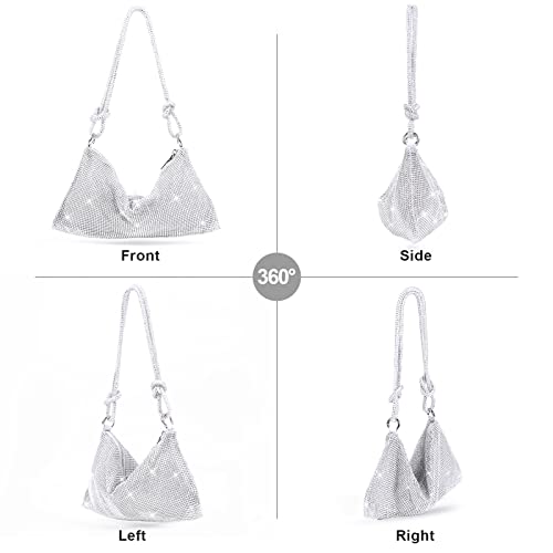 Borsa a tracolla da donna con strass, color argento, da sera, scintillante, per feste, matrimoni, serate fuori