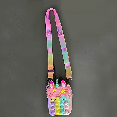 Borsa a tracolla Pop Fidget Giocattoli Fidget Borsa, Arcobaleno Corno Cavallo Semplice Fidget Bag Giocattolo Crossbody Bag Pop Bubble Fidget Giocattoli, Pop it per ragazze