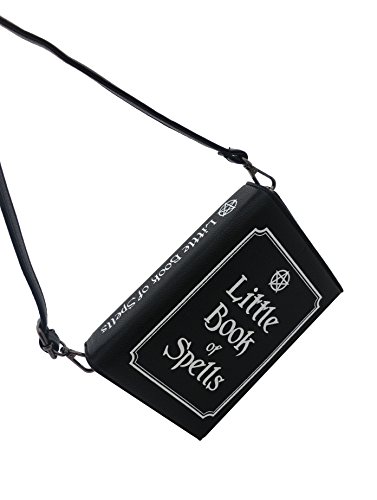Borsa a tracolla a forma di libro con la scritta in inglese “Little Book of Spells”, in pelle vegana, stile punk rock/gotico