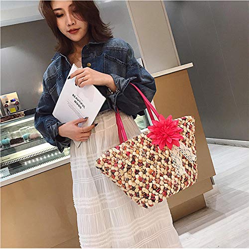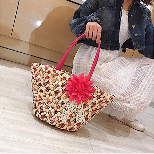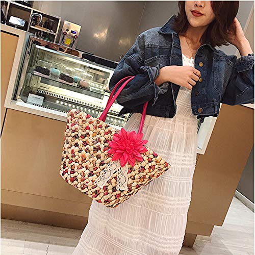 Borsa A Tracolla In Paglia Intrecciata Da Spiaggia Per Vacanze Per Il Tempo Libero Borsa A Tracolla In Paglia Intrecciata Alla Moda-Rosso_45 Centimetri * 17Cm * 25Cm