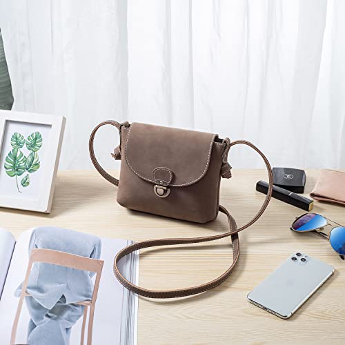 Borsa a Tracolla Piccola con Antifurto Chiusura - Vintage Borsetta da Donna in PU Pelle - Mini Messenger a Tracolla - Borsello Porta Cellulare Passaporto Tracolla (Caffè)