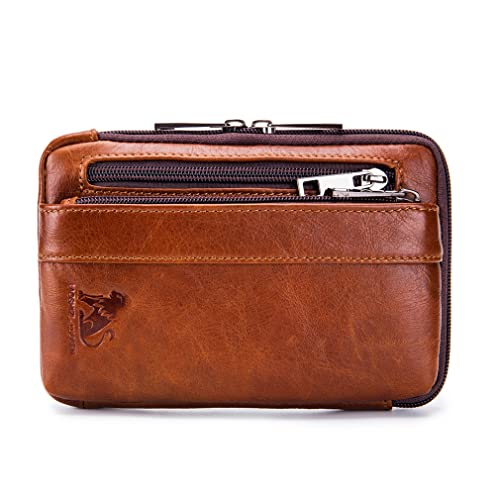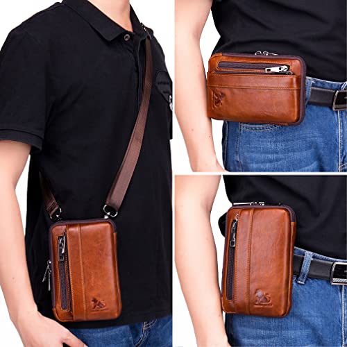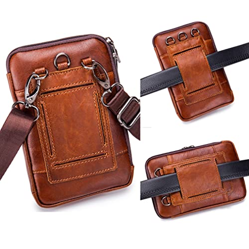 Borsa a tracolla piccola in pelle Borsa a tracolla per telefono Portafoglio Portafoglio Gancio ad anello Fondina Vita Marsupio Viaggio Campeggio all'aperto Escursionismo Zaino Marrone