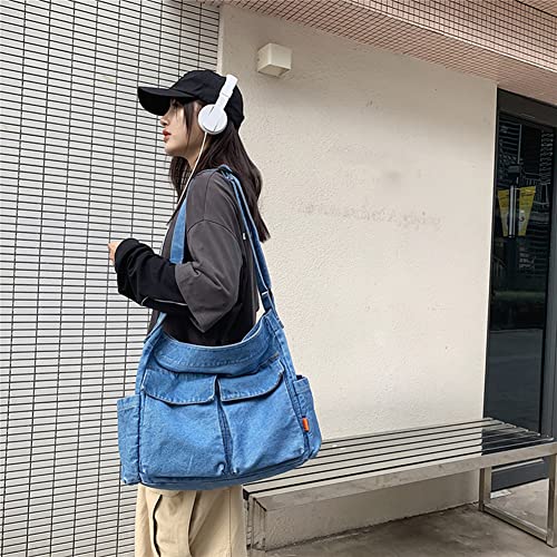 Borsa a tracolla in tela con tasche multiple per donne e uomini, A06-denim blu chiaro, 14.17*12.60*5.91in