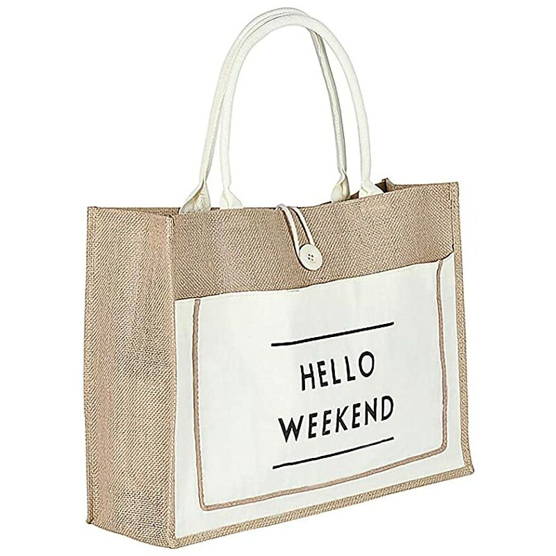 Materiale durevole - Borsa riutilizzabile realizzata in fibra di lino naturale ecologica, traspirante e resistente agli strizzacervelli 【Design premium】Fodera composita con film in PVC, capelli impermeabili non appiccicosi, più rinfrescante < p>【Semplice retrò】Applique grande sacco di iuta con adorabile pasta di cotone 'Hello Weekend' sul davanti 【Ne vale la pena】Perfetto per lo shopping quotidiano nella tote bag o per un weekend o per il spiaggia 【Promemoria amichevole】 Poiché i nostri prodotti sono fatti a mano, il materiale in lino conserva un sapore naturale di erbe. Se non ti piace l'odore, si consiglia di lasciarlo all'aria per un po' o di usarlo dopo la pulizia. Grazie per il supporto e la comprensione!