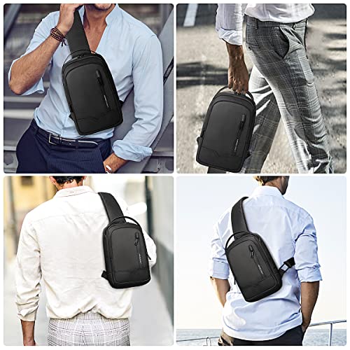 Borsa a Tracolla Uomo Borsa da Lavoro USB da 9,7"Zaino monospalla Marsupio da Petto Impermeabile Pratico Marsupio a Tracolla Borsa per il Tempo Libero con Porta di Ricarica USB per Viaggi Affari-Nero
