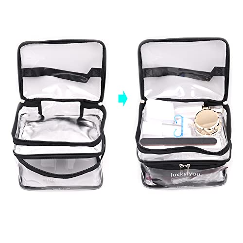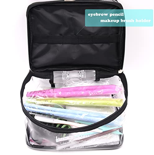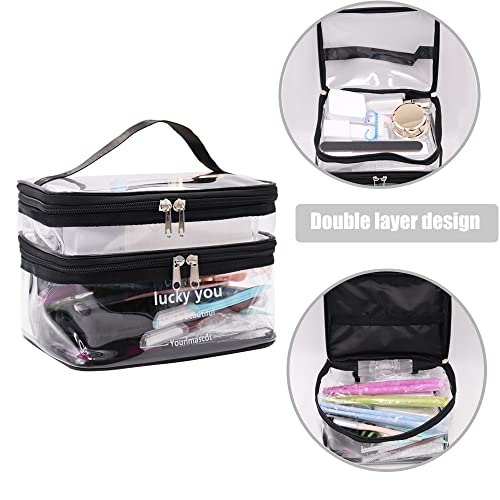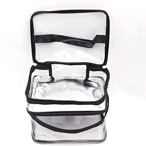 Borsa trasparente per articoli da toeletta, grande borsa cosmetica da viaggio in PVC borsa da trucco a doppio strato casi cosmetici da viaggio per donne e ragazze, Nero