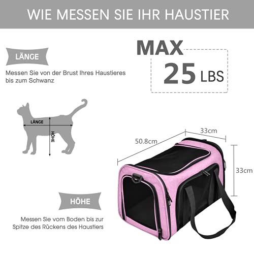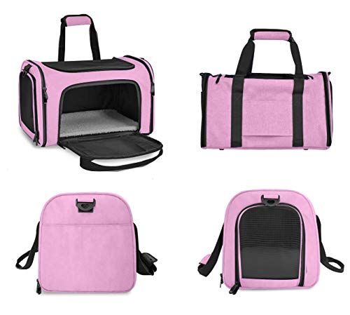 Qlf yuu Borsa per il trasporto per cani di piccola taglia, pieghevole, per animali domestici in aereo, trasportino per animali domestici di taglia media, gatti da 15 lbs (rosa, grande)