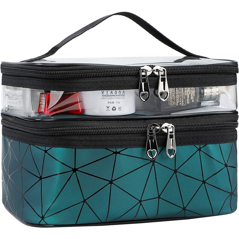 Materiali di alta qualità: i nostri beauty case sono realizzati con materiali ecologici in PU e TPU, progettati con robuste doppie cerniere. Che è resistente, impermeabile e facile da pulire. Design a doppio strato: è diverso dalla trousse cosmetica a spazio singolo nella vita quotidiana, che ha un design a strati e con fascia elastica nello strato inferiore che lo rende più comodo da ordinare e conservare. Ampia applicazione: ideale per conservare fondotinta, correttore, mascara, ombretto, cipria, fard, profumo, dentifricio, pettine, rossetto durante i viaggi, i viaggi di lavoro o il nuoto . Facile da riporre in valigia o sulla scrivania. Grande capacità: la borsa da toilette misura 23 x 17 x 16 cm / 9 x 6,7 x 6,3 pollici, sufficiente per contenere cosmetici quotidiani, articoli da toeletta, prodotti per unghie e pelle prodotti per la cura. Manterrà le tue cose pulite e organizzate. La scelta migliore per i regali: borse portaoggetti portatili di grande capacità e maniglia superiore