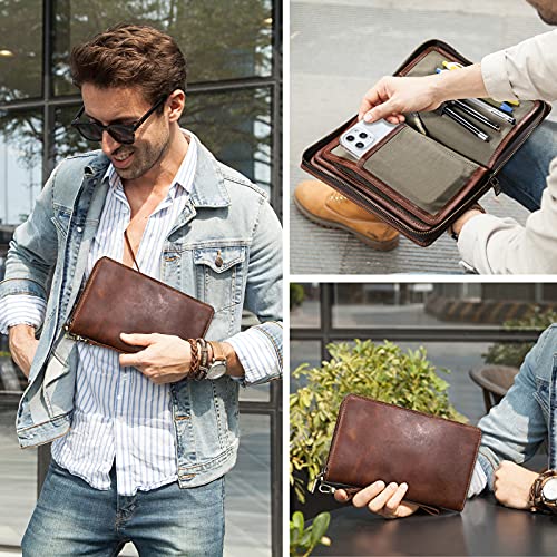 Borsa da uomo a frizione in pelle pieno fiore con cerniera per passaporto Portafoglio Business Large carry all Organizer libretto degli assegni frizione supporto per telefono