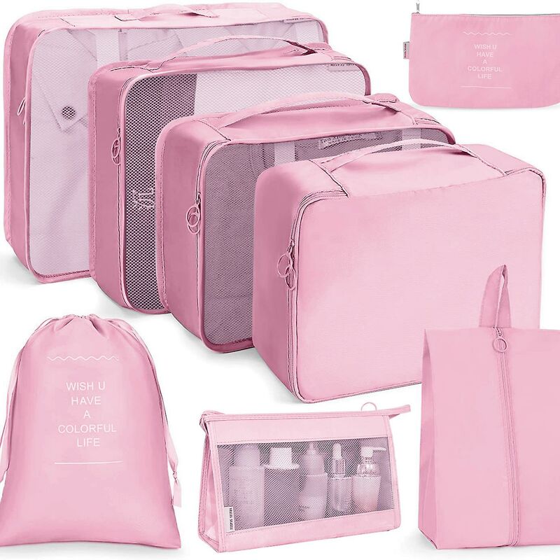 Br>Colore: grigio, blu navy, nero, blu lago, rosa, beige, blu brillantebr>Taglia: Borsa per abbigliamento: 40*30*11 cm, 31*26*11 cm, 30*22*11 cm.br>Borsa per biancheria intima: 27*20*11 cm, tasca con coulisse: 35*26 cm, 26*16 cm, borsa per scarpe: 33*21 cm, borsa per il lavaggio: 26*8*15 cm > Materiale: Poliesterebr>Peso: 450gbr>Descrizione:br>Perfetto per i viaggi e la casa: I cubi di imballaggio da 8 pezzi si adattano alla maggior parte delle valigie, delle borse e degli zaini delle compagnie aeree. Ideale per viaggi di lavoro, famiglia, vacanze e campeggio. Puoi anche usarlo come custodia nella tua casa.br>Risparmia tempo e spazio nella tua valigia: Con materiale a rete sulla parte superiore degli organizzatori dei bagagli da viaggio, trasparente u0026 traspirante, ti consente di accedere rapidamente e trovare l'articolo di cui hai bisogno. Risparmia tempo e spazio nella tua valigia.br>Materiale resistente: L'organizer per valigie è realizzato in tessuto di nylon di alta qualità