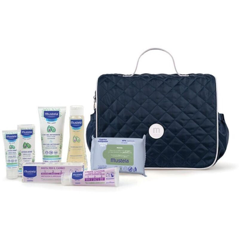 1 Gel detergente 2in1 200 ml, 1 Shampoo Dolce 200 ml, 1 Pasta Cambio 50 ml, 1 confezione di Salviette Multiuso e 1 Hydra Bebè crema viso 40 ml