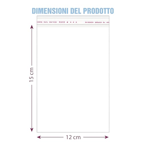 QUANTITÀ: La confezione include 100 pezzi di sacchetti trasparenti - DIMENSIONI: 12 x 15 cm.
