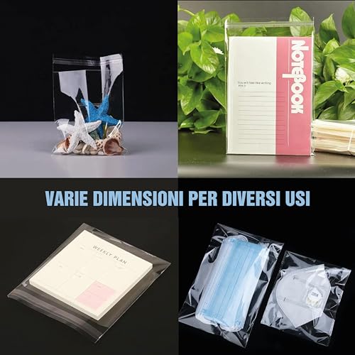 FACILE DA USARE: Ogni sacchetto del opp contiene una striscia di tenuta adesiva allargata, autosigillante senza usare fascette, sigillare ermeticamente e mantenere il contenuto più a lungo.