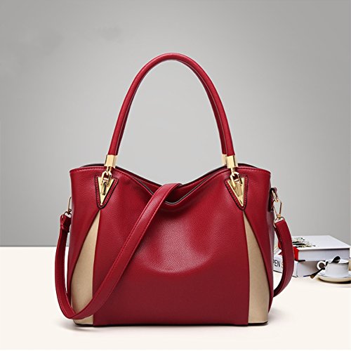 Borse Donna Borsa a Mano Hobo Borsa Spalla Bandoliera Grande Borsa Cuoio alla Moda Multicolore in Pelle Sintetica (rosso)