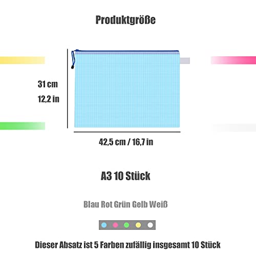 Borse di File, Mesh Sacchetto del Documento A3 Per Documenti, Mappe e Compiti, Colore Casuale, 10 Pezzi