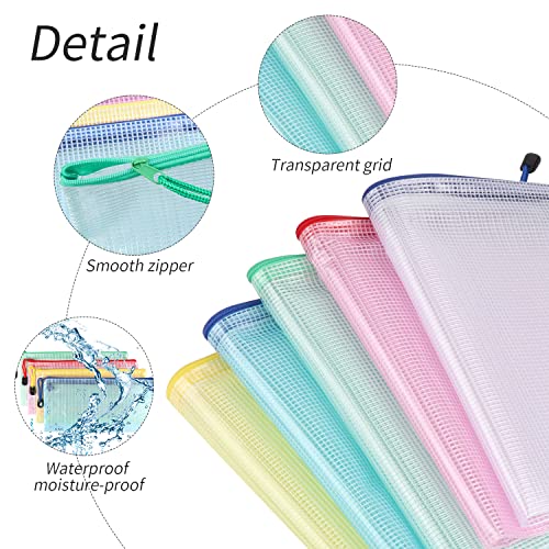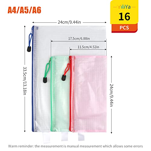 Borse di File A4 + A5 + A6,16 Pezzi Sacchetto di Zip Impermeabile Mesh Sacchetto del Documento per Documenti Ricevute Cosmetici Forniture Accessori da Viaggio Multicolore