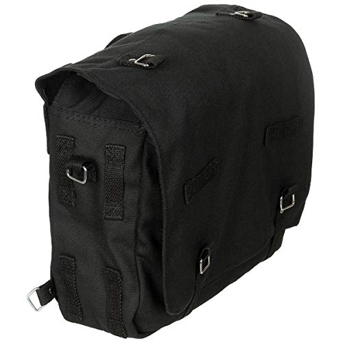 Patta principale con D-anelli di metallo, allegato con passanti e fibbie. Scomparto espandibile anteriore con chiusura a bottone. Ampia tracolla regolabile e staccabile