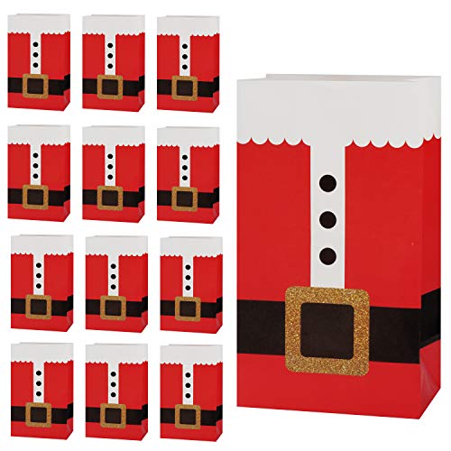 Borse Regalo Natale (30pz) - (12x8x21cm) Confezioni Biscotti Natalizie Design Tuta Babbo Natale- borse Cartone Borsa Porta Biscotti, Caramelle, Bomboniere- borse Cartone Regalo per Amici, Famiglia