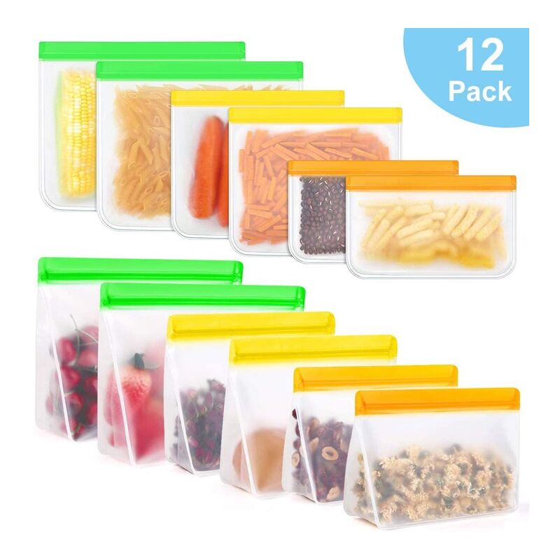 Sacchetto di stoccaggio di cibo sostenibile e sicuro - : Realizzato in peva ultra-spessa ed ecologica di 0,5 mm, PVC di qualità alimentare, senza piombo, senza cloro e riciclabile. Questa borsa di cotone è più resistente da usare, sicura per la famiglia e sicura per l'ambiente. [12 borse, adatto per famiglia e viaggi]: È un nuovo set conveniente di cerniera (15.3x10,5x5.1 cm) (20.3x14.5x5.1 cm) (25.4x18.3x5.1 cm), ha fornito diverse opzioni di archiviazione e organizzazione. Può contenere quasi tutto, incluso la famiglia, la cucina, i giocattoli, i cartoleria e gli accessori da viaggio. Il design trasparente consente di visualizzare rapidamente i contenuti interni. [Super impermeabile e sicurezza congelatore]: Questa borsa va al congelatore. La cerniera doppia migliorata offre una guarnizione ultra-sigillata, garantendo che non vi siano perdite di liquido o aria. Il sacchetto di stoccaggio perfetto è adatto per la conservazione di vari alimenti, come panini, frutta fresca, carne