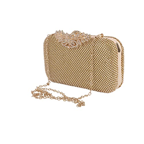 Borse da sera in cristallo Pochette da sposa, borsa con strass diamante da sera pochette con chiusura unica pochette in argento per feste da ballo da sposa, Oro, Universal large