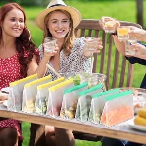 Borse in silicone riutilizzabili, con chiusura lampo, per conservare vegetali, latte, snack, meat, confezione da 6