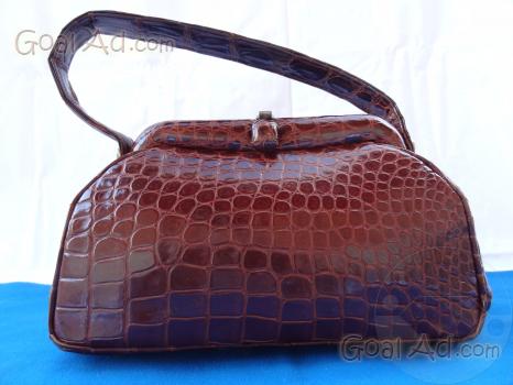 Elegante borsetta con manico in pelle di coccodrillo anni "50. L'interno ospita da una parte una taschina con cerniera lampo, dall'altra due taschine l'una porta specchietto/portacipria e l'altra il rossetto; chiusura a scatto; colore bordeaux. Misure (cm): 27 x 16 x 7 Articolo usato, ma è in ottime condizioni, interno intatto. Non presenta abrasioni evidenti o che ne precludono l'integrità. Per maggiori dettagli non esitare a contattarmi. Prezzo euro 132,00. Vendita solo in Italia. Consegna diretta brevi manu o tramite posta pacco ordinario. Pagamento bonifico bancario
