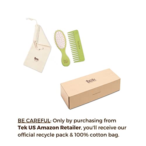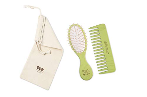 TEK - Kit da Borsetta: Spazzola Ovale Piccola e Pettine Piccolo Rado Lime con Custodia in Cotone, Handmade in Italy
