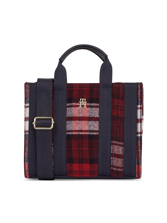 Tommy Hilfiger Borsetta Th Identity Small Tote Check AW0AW15884 Blu scuro