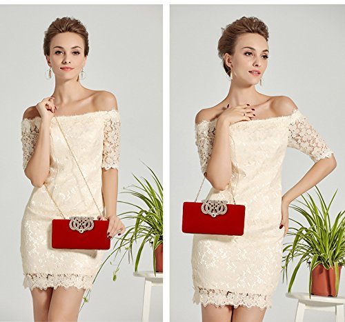 Borsetta con Tracolla da Donna Pochette con Diamante Elegante Borsetta da Sera Portafoglio Lungo/Rosso
